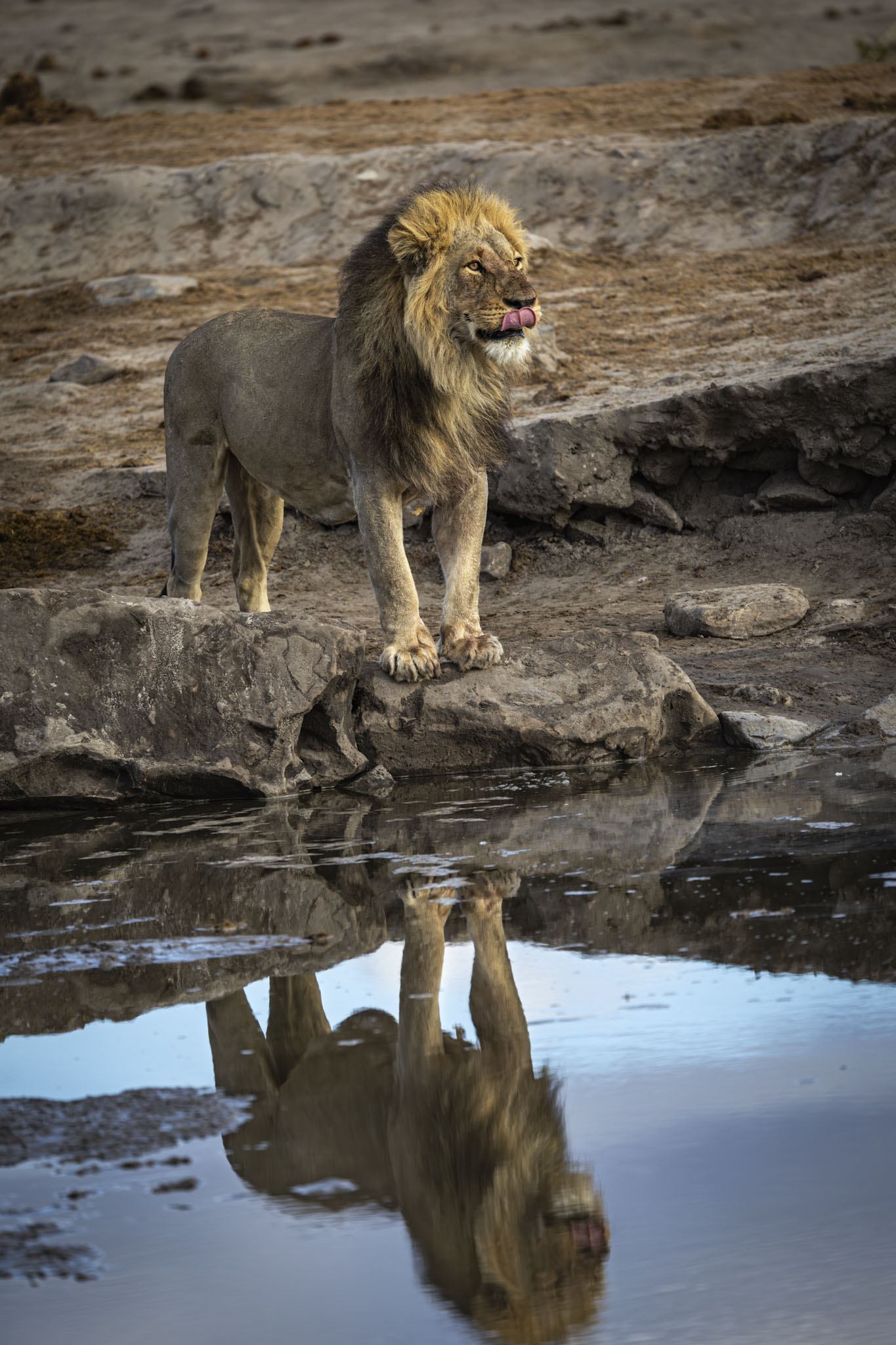 Lion tracks cut through dust where the channel used to run. Here, life survives by understanding limits — nothing wasted, nothing taken for granted.